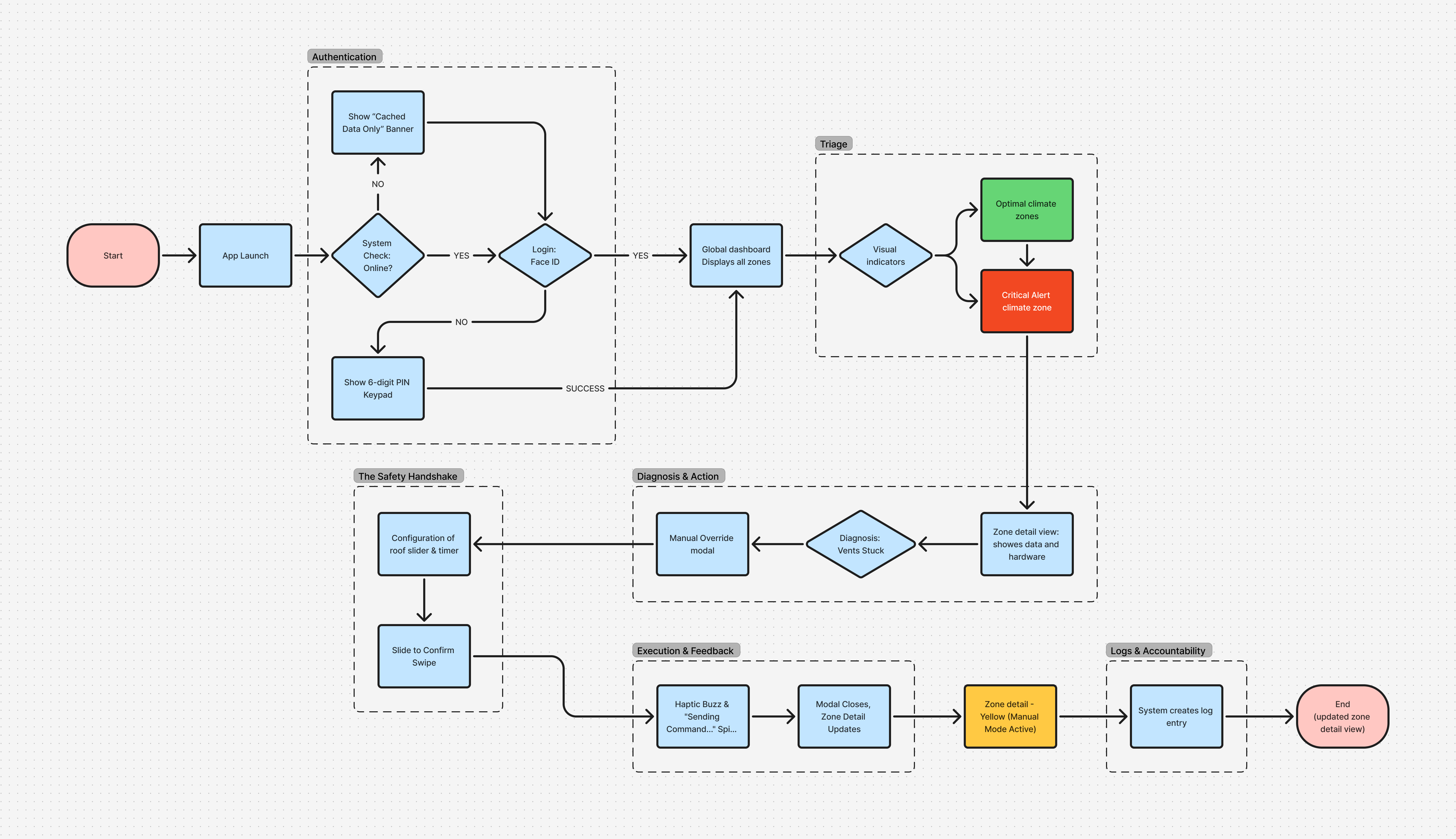 - Glove-First Ergonomics: We abandoned the standard 44px HIG/Material design guidelines. All primary interaction zones were expanded to a 64px minimum.